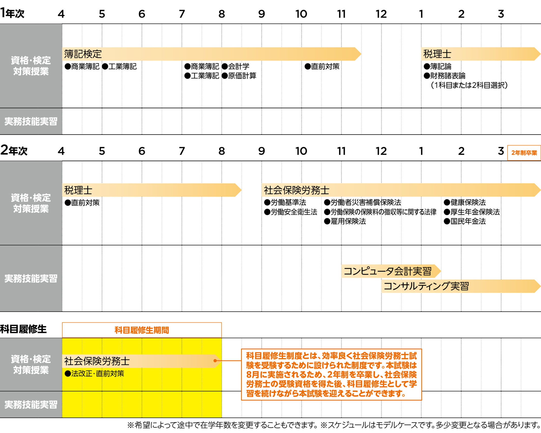 - ※2~4年制卒業後、4ヵ月の科目履修生として、合格をめざします。