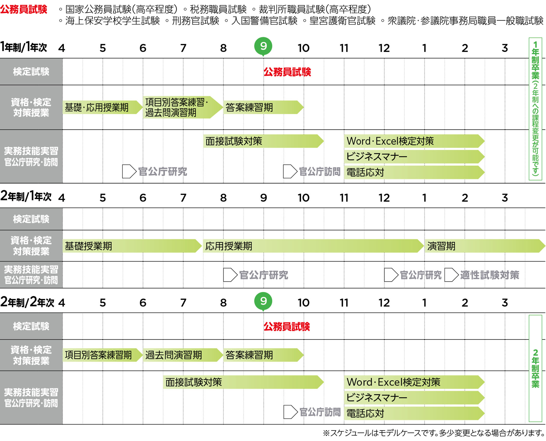 各省庁で活躍する国家公務員一般職や税務職員、裁判所一般職などへの合格をめざします。