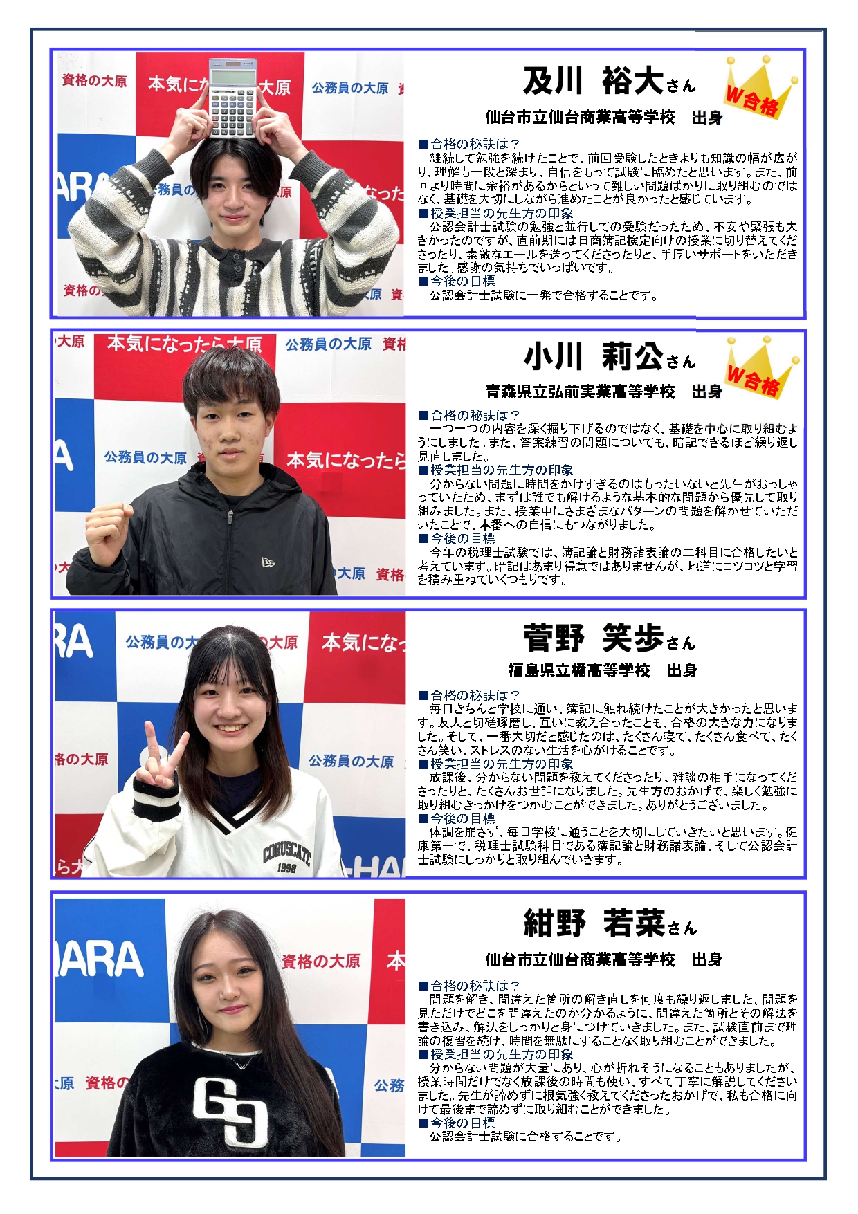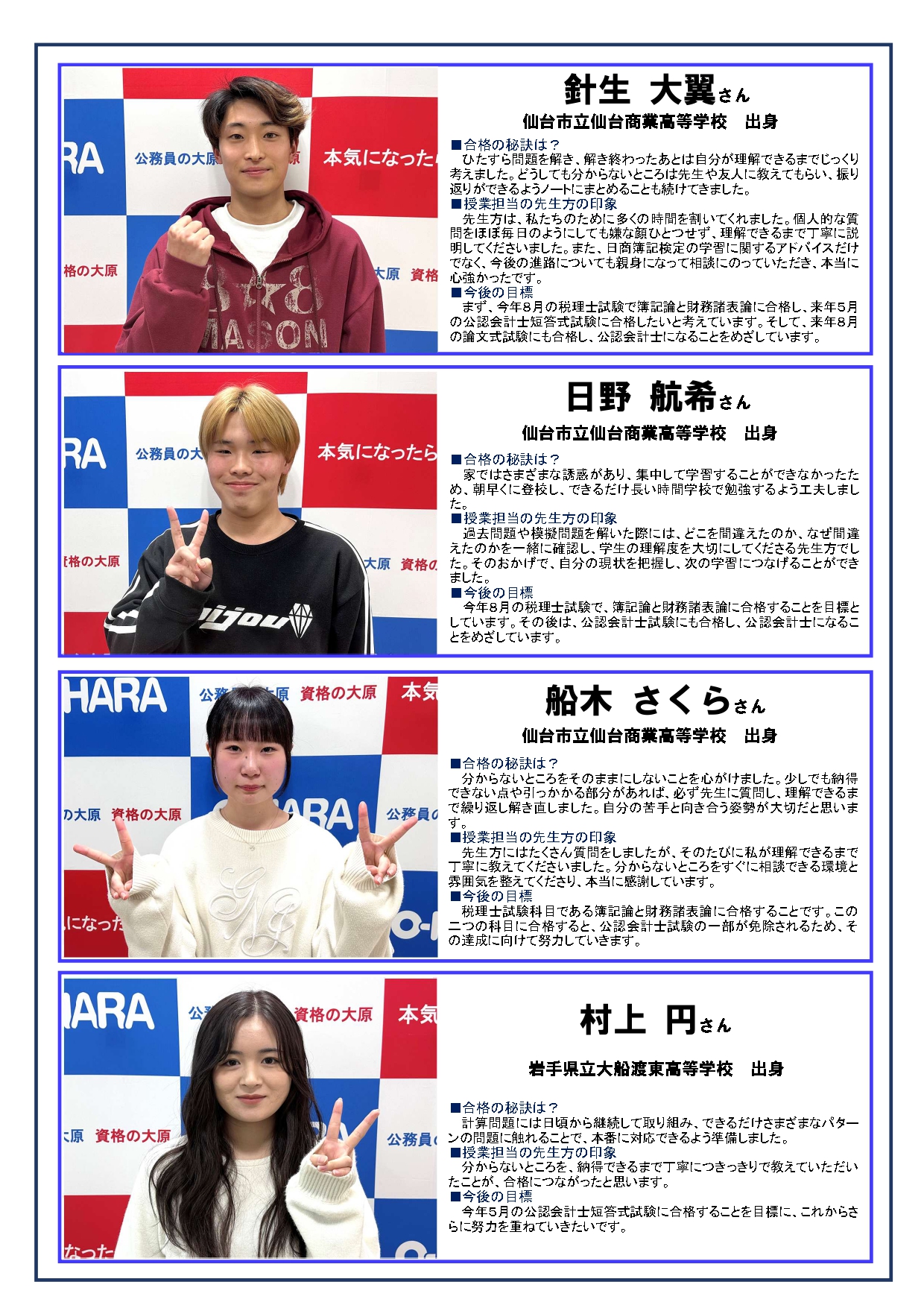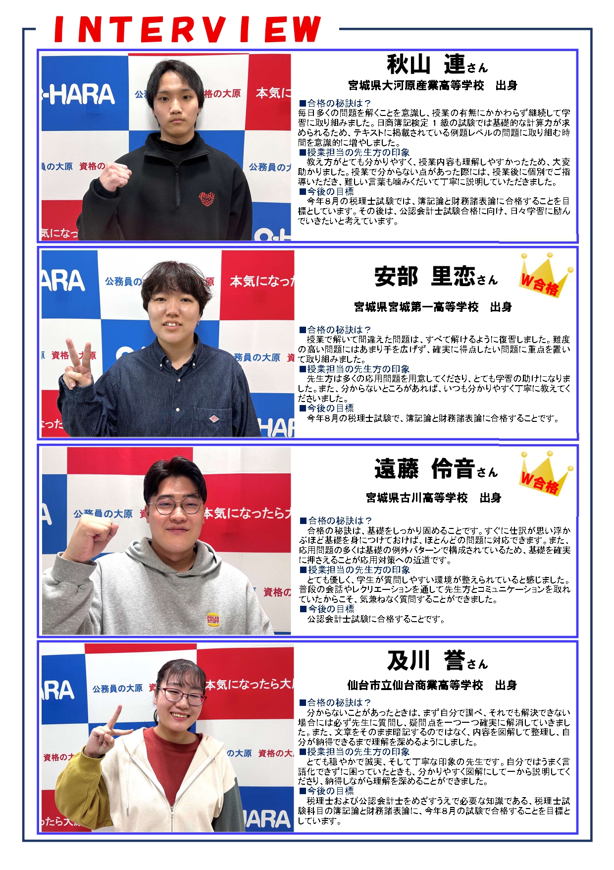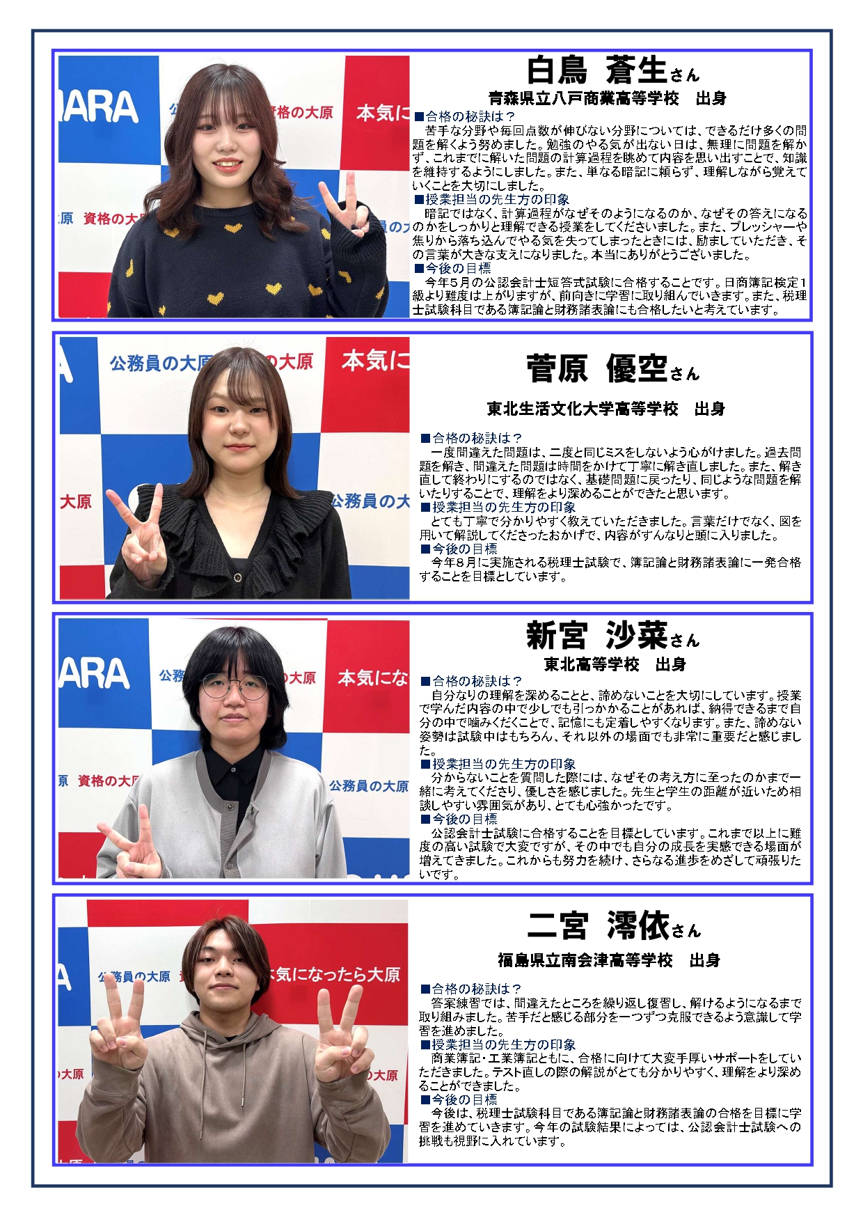 この他にも資格を取得した仙台大原生のインタビュー記事をお届けしています。