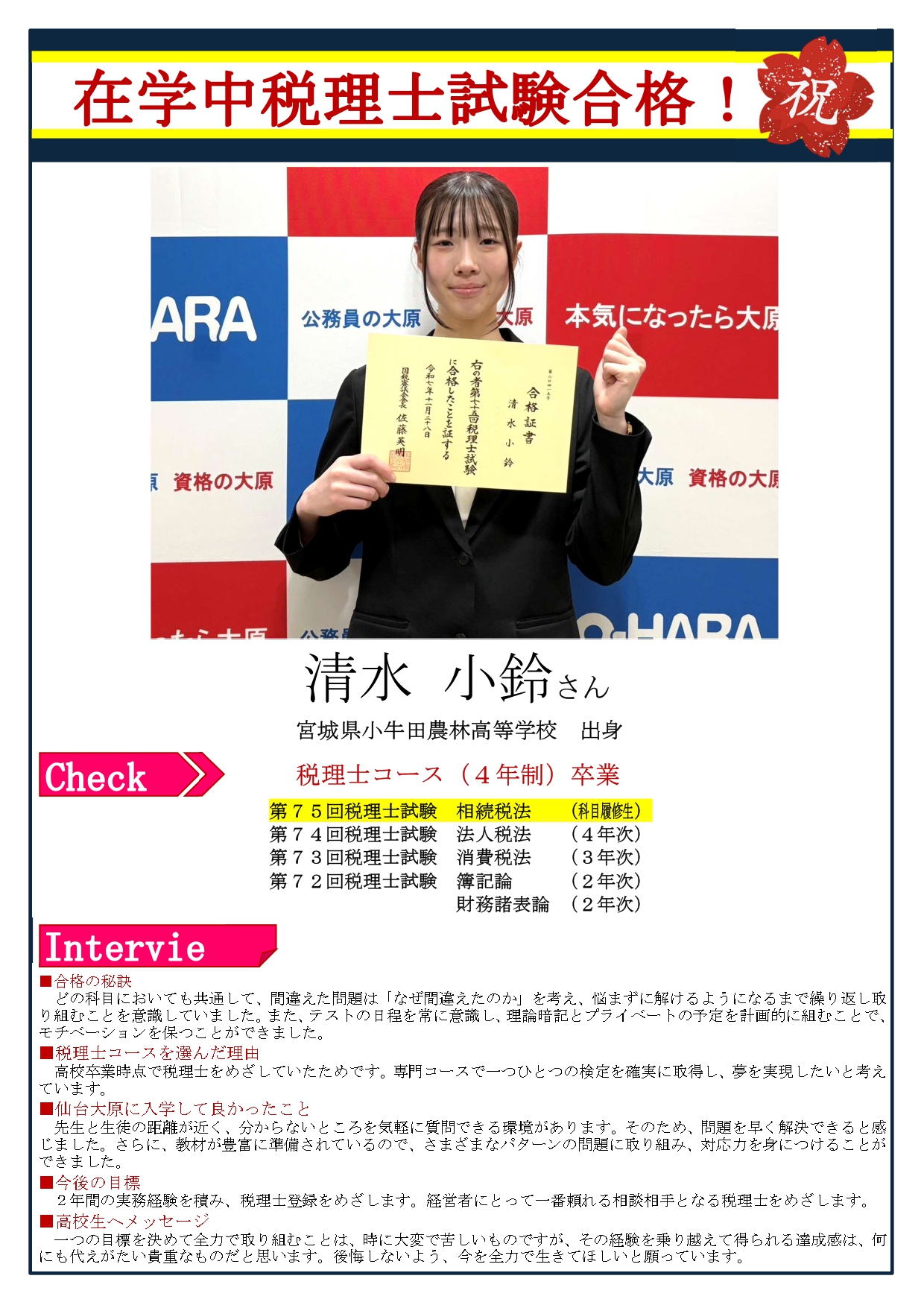第75回税理士試験合格ポスター