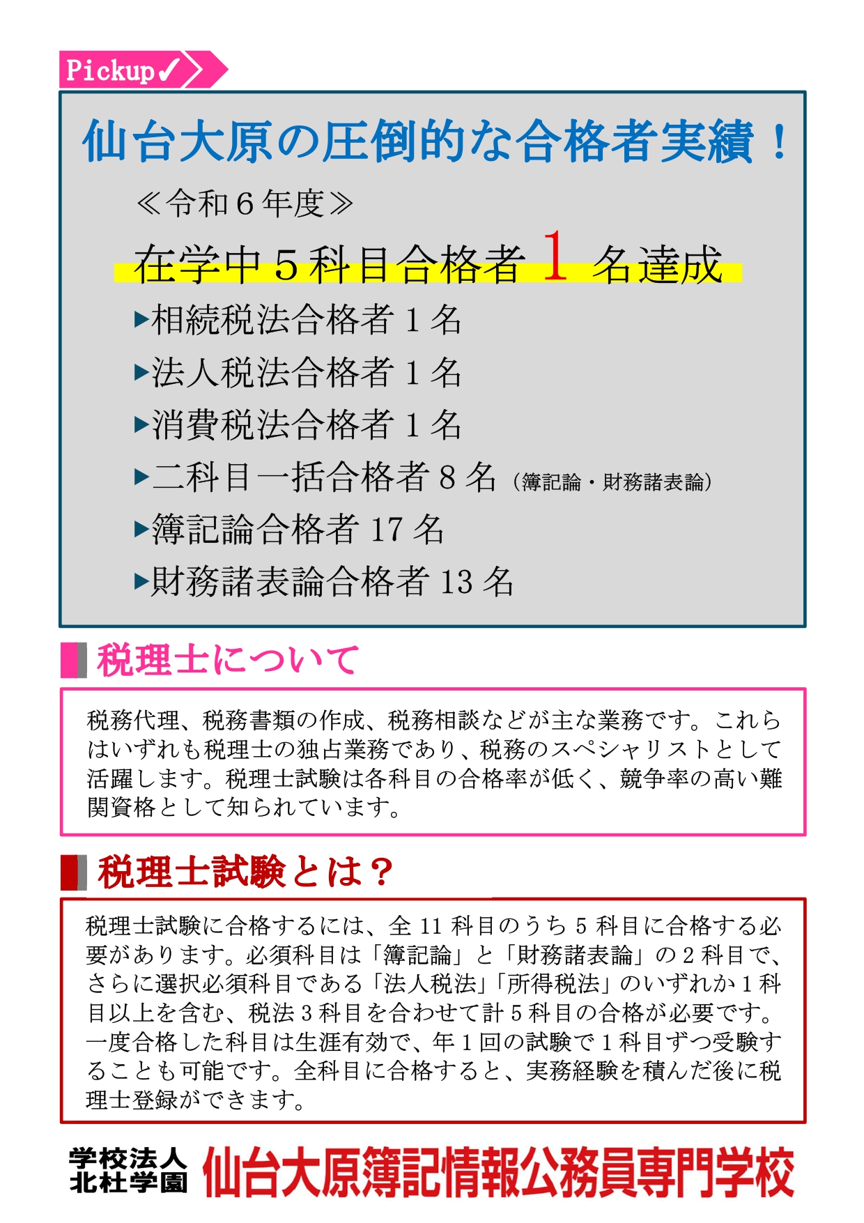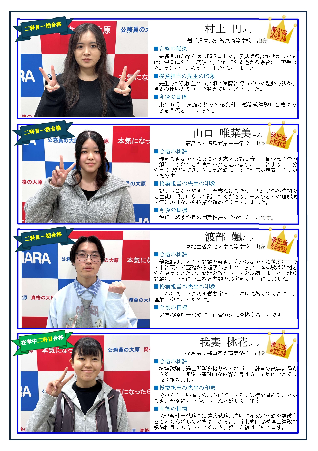 ※合格者数は仙台大原全体の人数です。